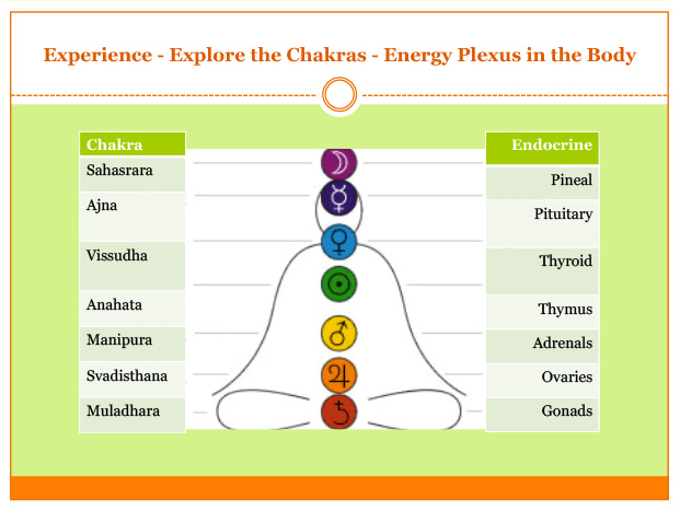 Chakras are energy zones in the subtle body. The Vedic texts present varying number of chakras. In this workshop we will focus on the seven chakras that are considered to be major plexuses. Together we will practice with: